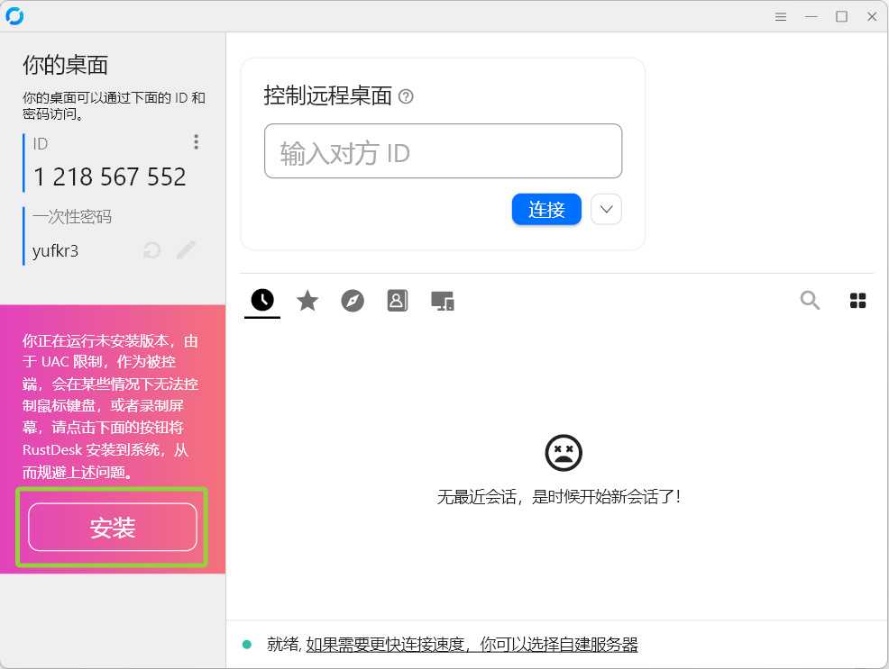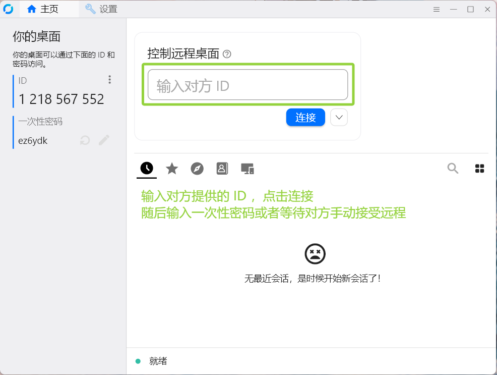 将 ID 和 一次性密码 发送给远程用户即可让对方控制你的电脑。