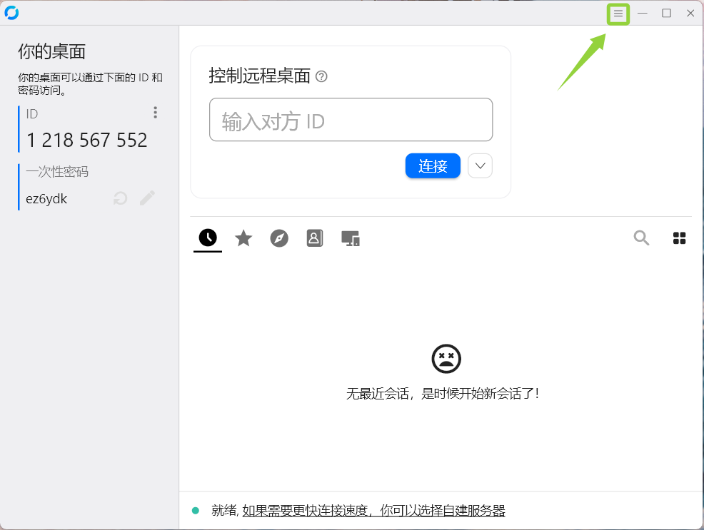 也可以只发送 ID ,随后手动点击右上方的接受按钮让对方无需密码进行控制。