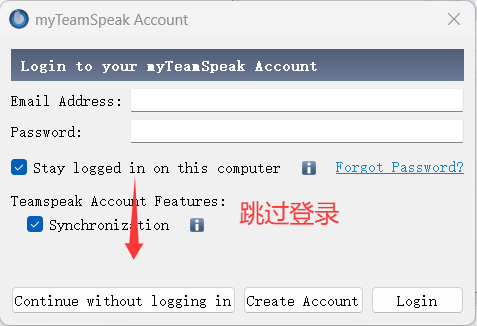 不强制登录 myTeamSpeak 账户。
